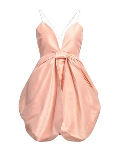 Woman Mini Dress Apricot Size 2 Polyester, Metallic Polyester In Orange