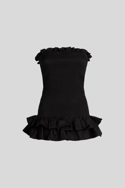 Top Arricciato Con Volant Nero In Black