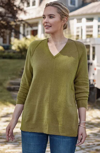 J.jill Pure Jill Recycled Cashmere V-neck Sweater In Green