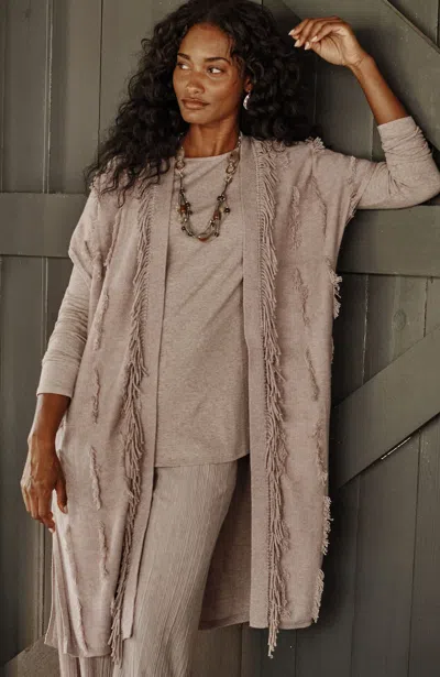 J.jill Pure Jill Jacquard Fringe Gilet In Light Mocha Heather