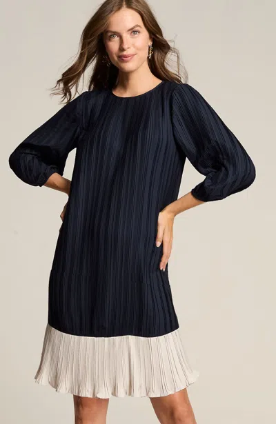 J.jill Wearever Plissé A-line Dress In Navy Blue,oatmeal