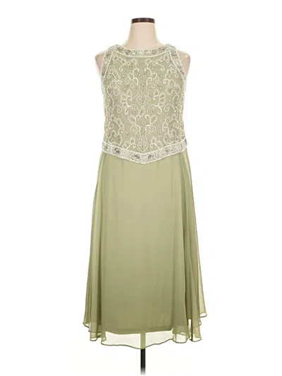 Pre-owned J Kara Women's Plus Size Caplet Short Cocktail Beaded Dress In Grey/multi