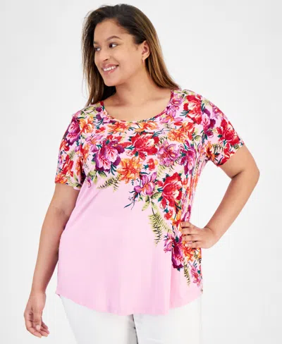 Plus Size Paradise Garden Short-sleeve Top, Created For Macy's In Blossom Berry Combo