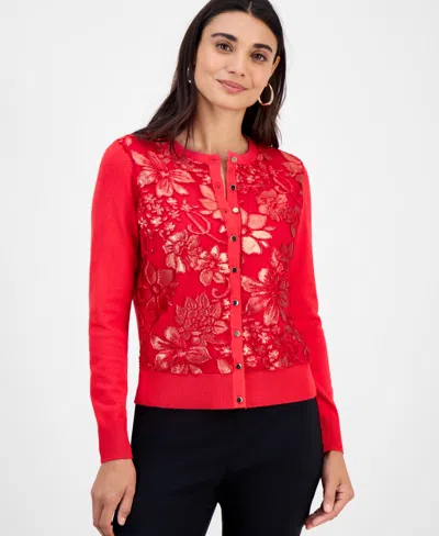 Petite Foliage Party Cardigan, Macy's Exclusive In Red