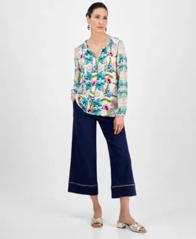 Women's Printed 3/4 Sleeve V-neck Knit Top, Macy's Exclusive In Blue