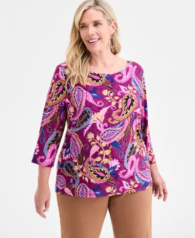 Petite 3/4-sleeve Jacquard Top, Macy's Exclusive In Multi