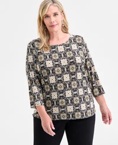 Women's Printed Scoop-neck 3/4-sleeve Top, Exclusively At Macy's In Black