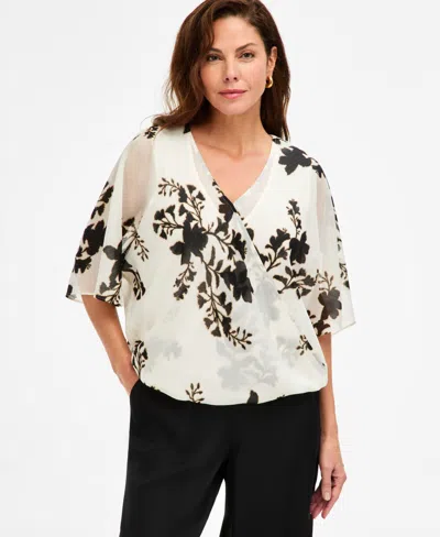 Women's Surplice V-neck Elbow-sleeve Top, Macy's Exclusive In White