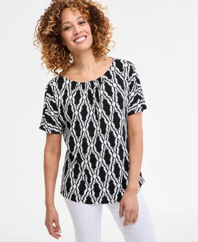 Women's Printed Scoop-neck Short-sleeve Top, Exclusively At Macy's In Black