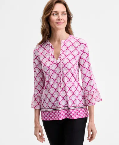 Women's Printed V-neck 3/4-sleeve Top, Exclusively At Macy's In Pink