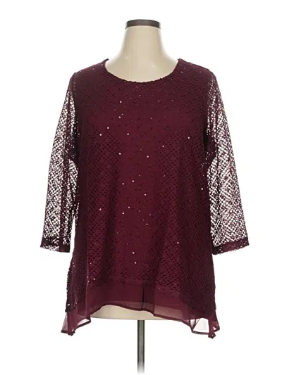 3/4 Sleeve Top Burgundy Crew Neck Tops