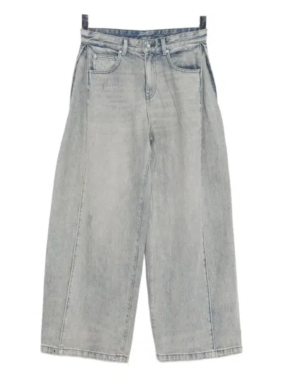 Oversized Floral-appliqué Denim Jacket In 蓝色