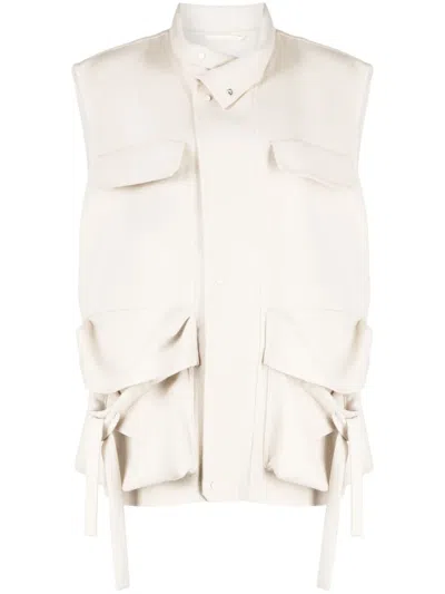 Multiple-pocket Wool Vest In Neutrals
