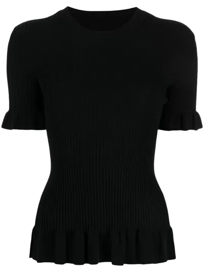 Ruffle-trim Ribbed Knitted Top In Black