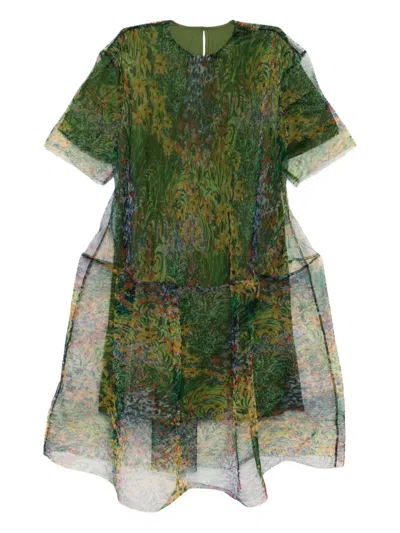 A-line Short-sleeves Dress In Green