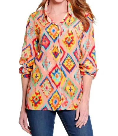 Plaid Button Up Top With Velvet Collar In Black In Multi
