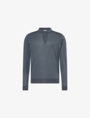 Mens Knitted Long-sleeve Wool Polo Top Charles Blue