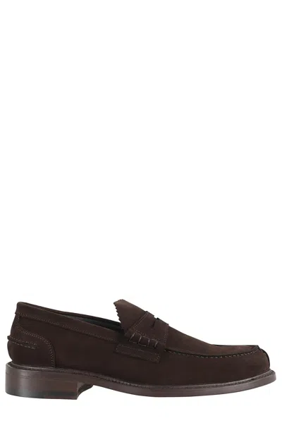 Almond-toe Suede Moccasins In Brown
