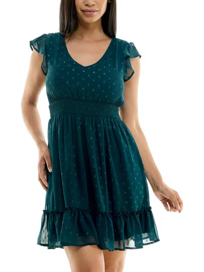 Juniors Womens Metallic Polka Dot Mini Dress In Green
