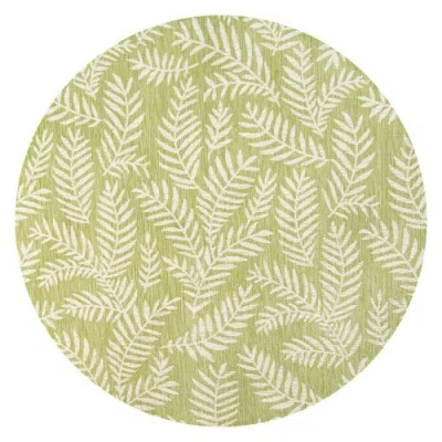 Nevis Palm Frond Indoor/outdoor Round Area Rug In Green/cream