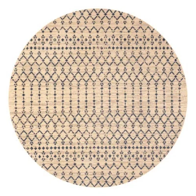 Ourika Moroccan Geometric Textured Weave Indoor/outdoor Round Area Rug In Beige/navy