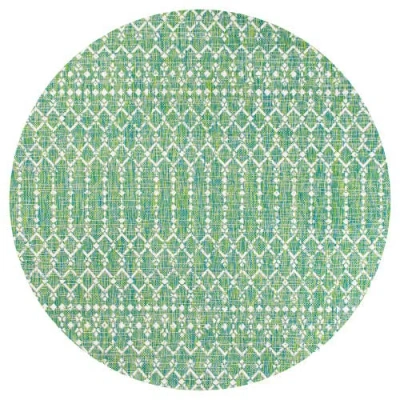 Ourika Moroccan Geometric Textured Weave Indoor/outdoor Round Area Rug In Green/ivory