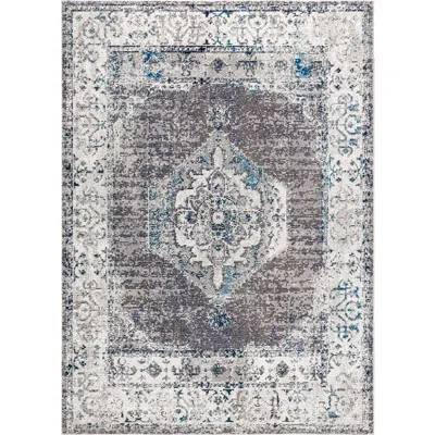 Ankara Vintage Medallion Area Rug In Gray/ivory