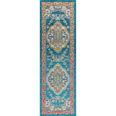 Armae Distressed Medallion Chenille Machine-washable Area Rug In Terra/blue