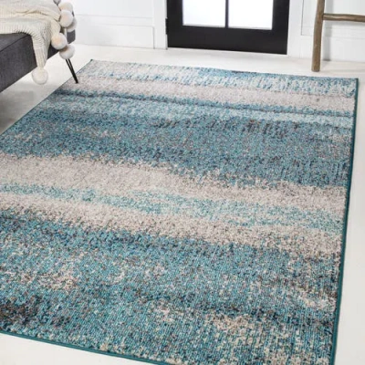 Contemporary Pop Modern Abstract Vintage Area Rug In Cream/turquoise