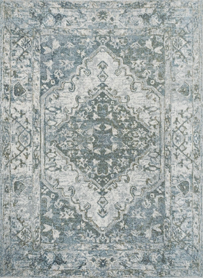 Pavel Distressed Medallion Low-pile Machine-washable Blue/cream Area Rug