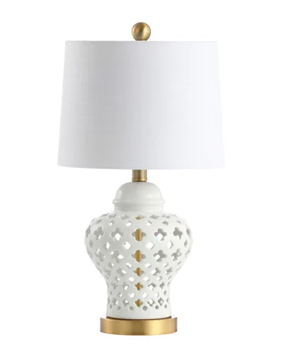 Designs Quatrefoil Fretwork 20.5in Pierced Ginger Jar Ceramic/metal Led Table Lamp