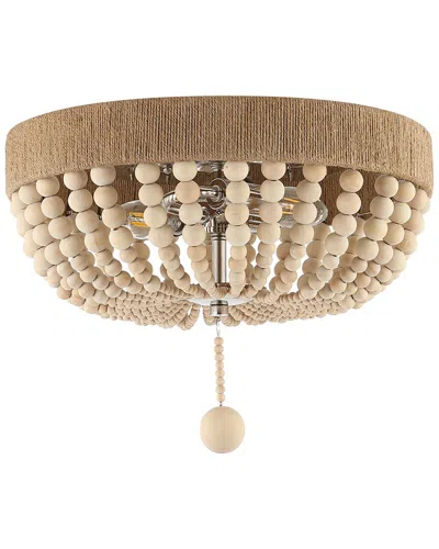 Justina Wood Bead 14in 2-light Led Flush Mount In Taupe