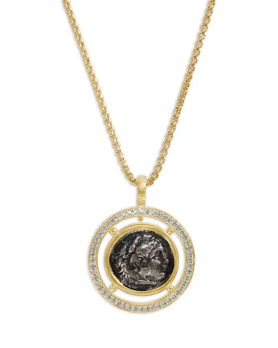 18k Yellow Gold Diamond Alexander The Great Coin Pendant In Metallic