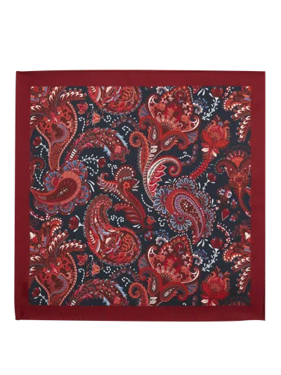 Botanical Paisley Silk Pocket Square Burgundy - Size: One Size