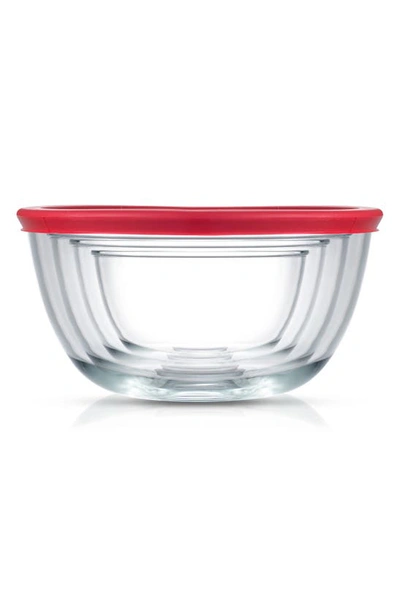 Set Of 4 Thick Glass Mixing Bowls With Airtight Lids In Red