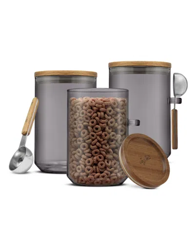 Holden Stackable Glass Storage Canister With Wood Lids And Scoops, Set Of 3 In Gray