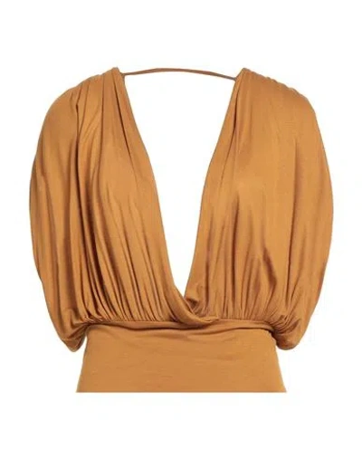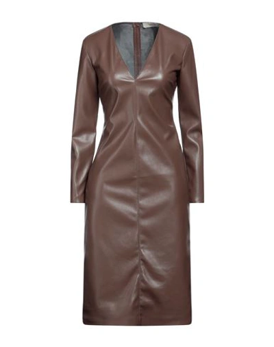 Woman Midi Dress Brown Size 10 Polyester, Polyurethane
