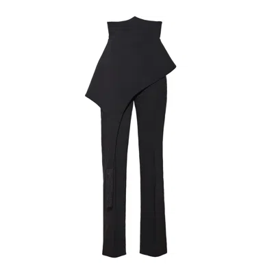 Women's Wide Leg Trousers With Skirt Overlay Black