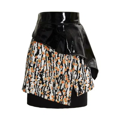 Women's Yellow / Orange / Black High-waisted Multi-layered Mini Skirt With Patent Belt Orange In Yellow/orange/black
