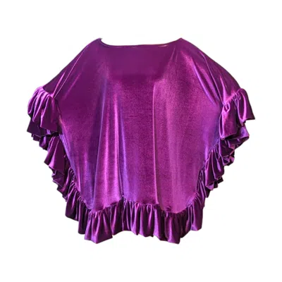 Women's Purple Mini Ruffle Plum Velour Dress In Multi
