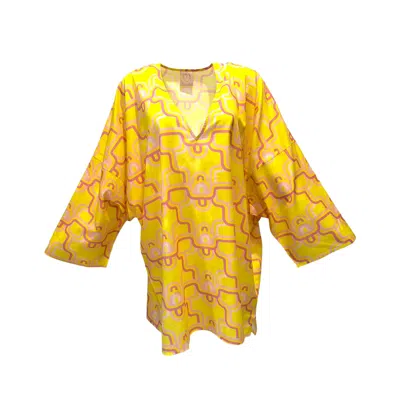 Women's Yellow Veronica Lydy Limon Silk Cotton Kaftan Top