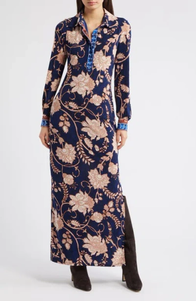 Paisley Long Sleeve Velvet Midi Dress In Multi