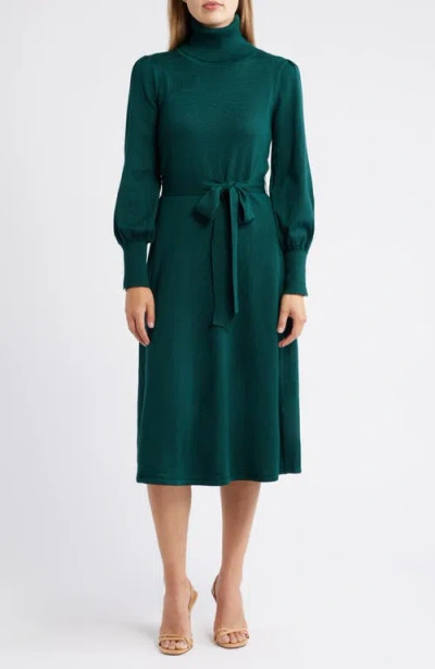 Turtleneck Long Sleeve Midi Dress In Green