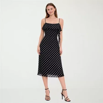 Womens Juniors Midi Polka Dot A-line Dress In Black