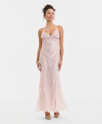Juniors' Beaded Evening Gown In Pink