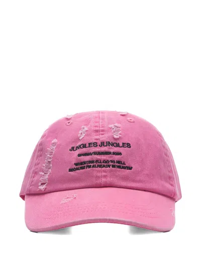Distressed Embroidered Cap In Pink