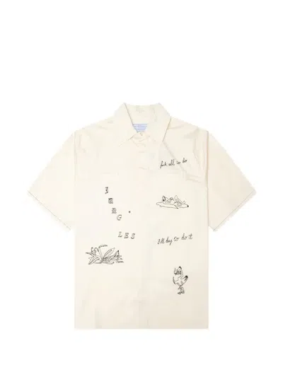 Embroidered Short-sleeve Shirt In Neutral