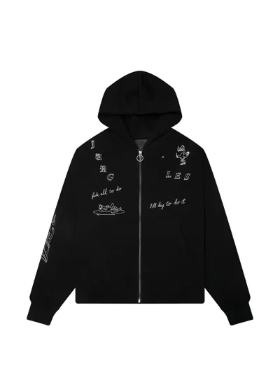 Embroidered Zip-up Hoodie In Black
