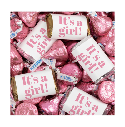 100 Pcs It's A Girl Baby Shower Candy Pink Hershey's Kisses Milk Chocolate (1lb, Approx. 100 Pcs)