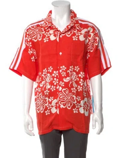 Pre-owned Linen Floral Print Shirt W/ Tags In Red